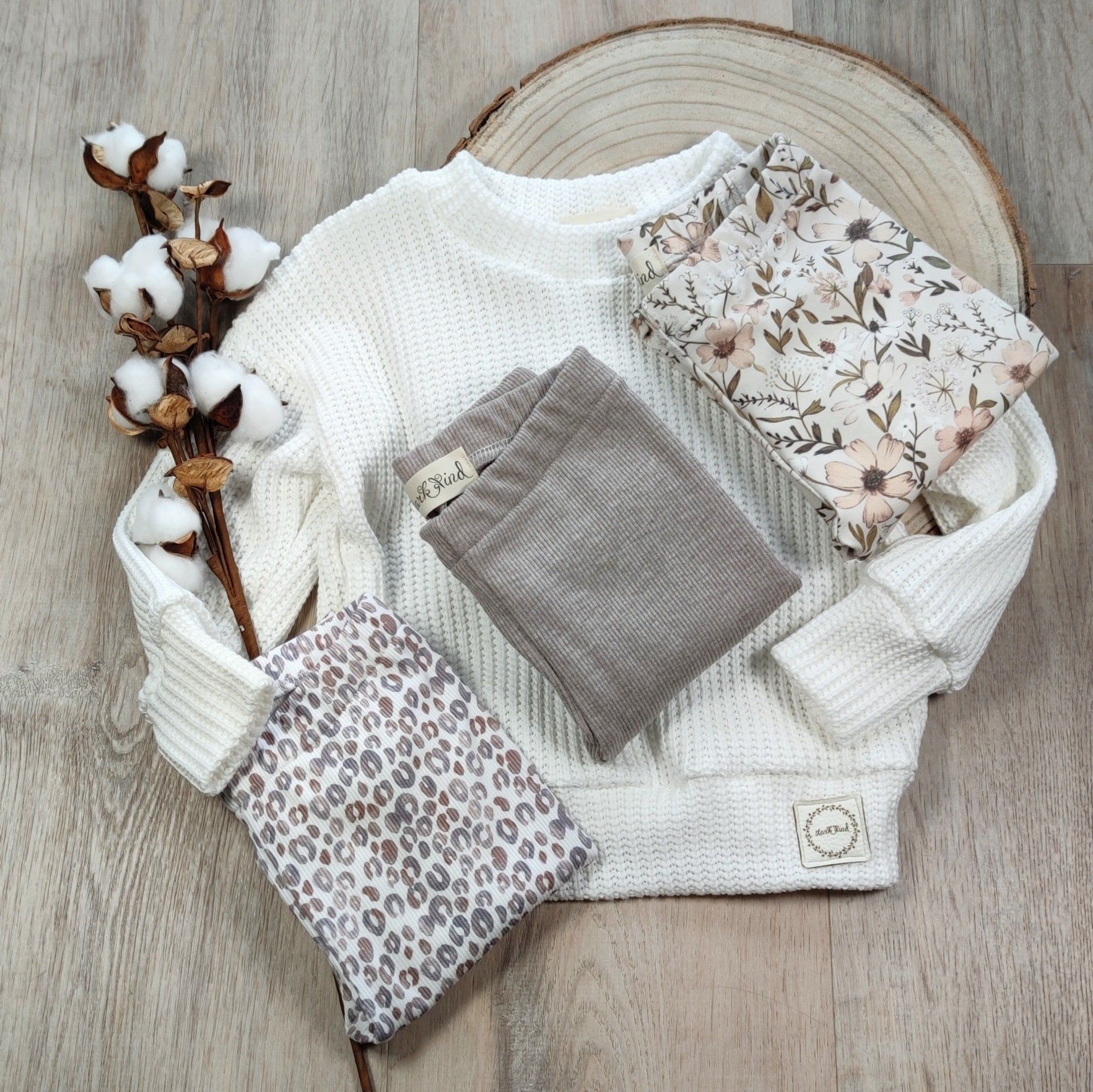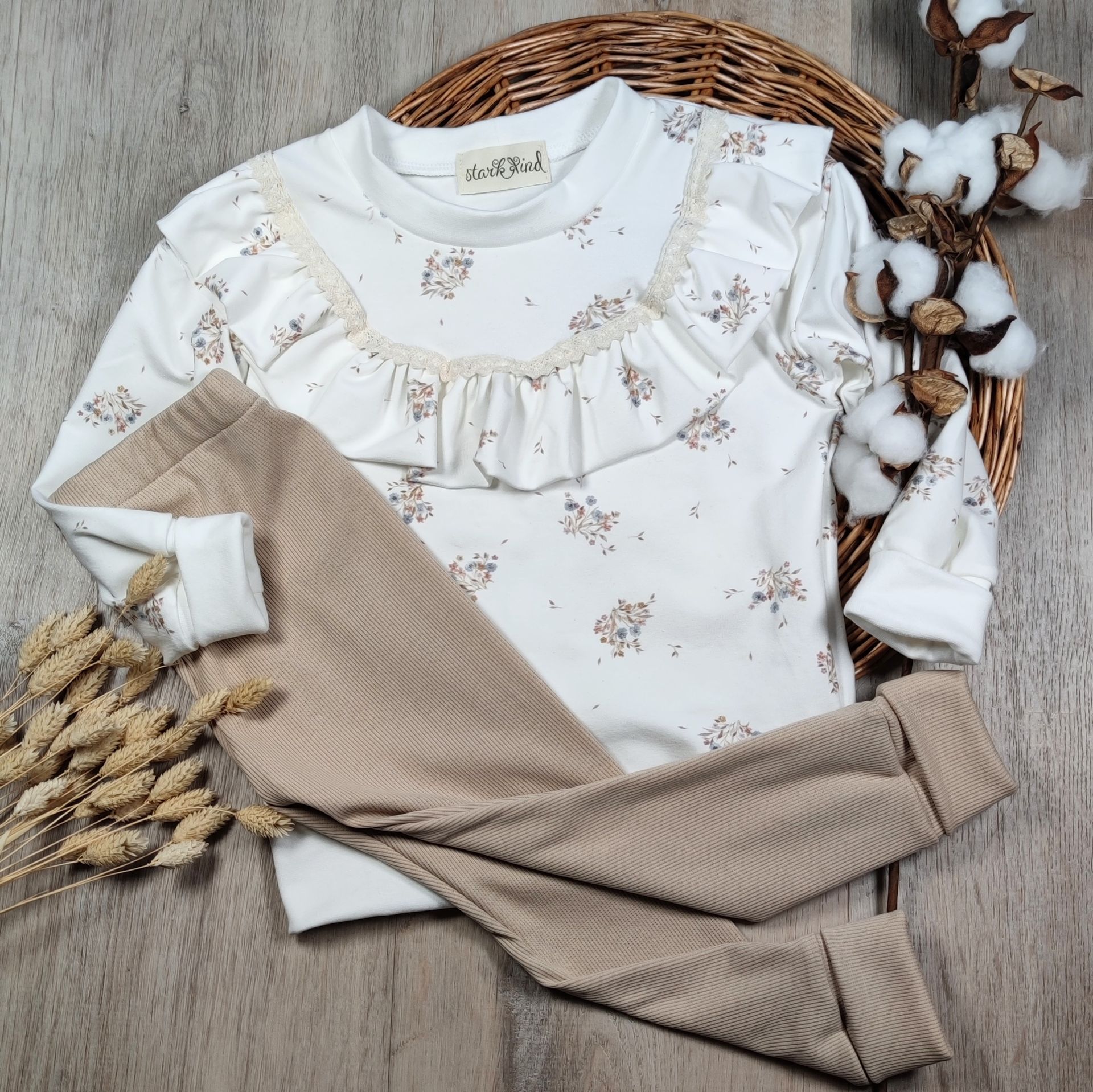 Bei Baby- und Kinderkleidung sind Bündchen von Vorteil. Sie bieten die Möglichkeit die Kleidung mitwachsen zu lassen und dadurch länger tragbar zu machen. Das schont einerseits den Geldbeutel und ist zudem nachhaltiger. Deshalb nutze ich sowohl bei Leggings oder Pullis gerne Bündchen, die die Kleidung mitwachsen lassen.